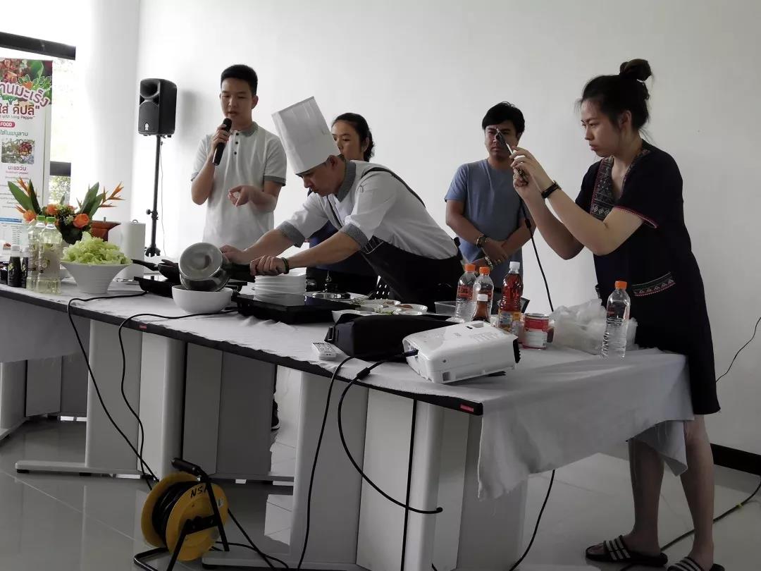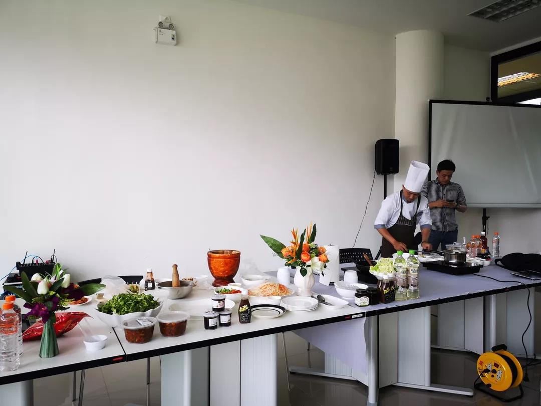 在游覽完素貼山后,時間已來到正午用餐時間。在假日酒店用完自助餐并休憩后,我們前往清邁大學科學研究中心學習泰國菜的烹飪手法。