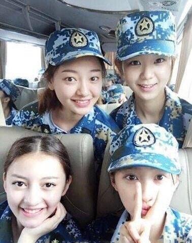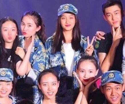 后來關曉彤軍訓的一張照片也在找了出來,近照里的關曉彤在一眾同學中間,頭上戴著帽子、身上穿著軍訓的軍裝,英姿颯爽,還做出了剪刀姿勢,非常可愛。