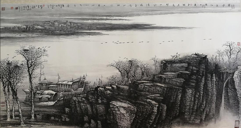 郭杭建先生的國畫作品多以唐詩宋詞為立意主題,氣局宏大寬廣、格調野逸疏緩、筆致俊朗靈動又不失遒勁厚重、運墨端莊內斂且大氣磅礴,讓人感受到揮之不去的筆情墨韻。