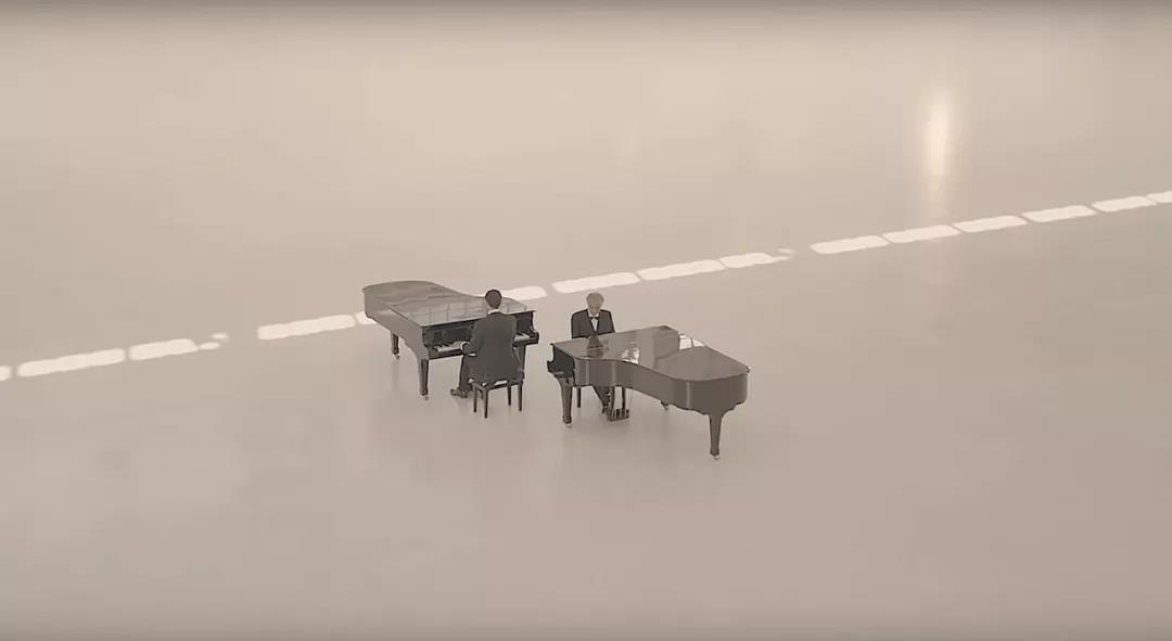 兩人背對而坐,兩雙手在兩架鋼琴間默契地演奏著,歌曲一開始先是由安德烈·波切利的兒子馬特奧·波切利唱著:我不知道什么才適合我,我無法分辨,我躊躇太久……