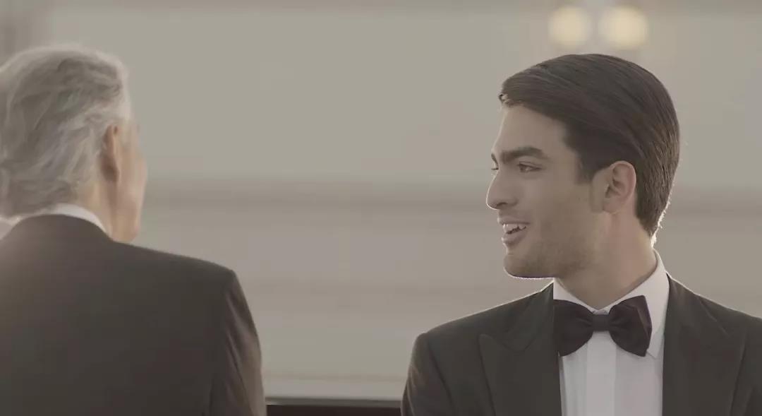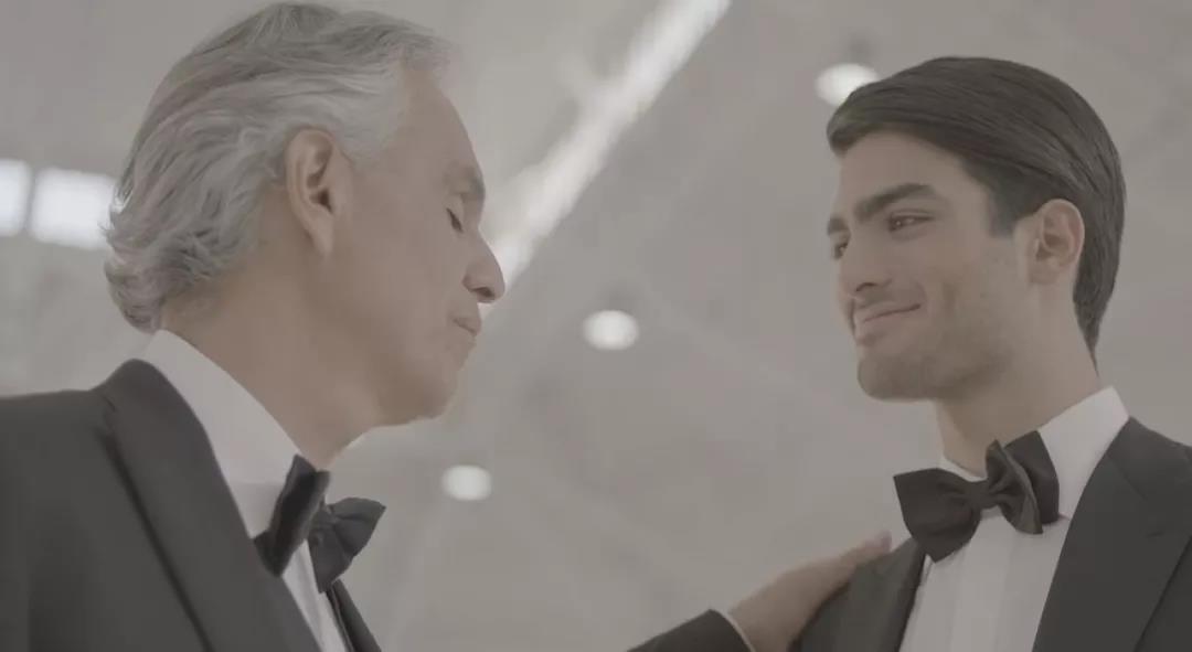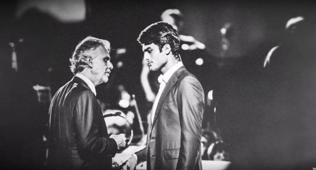 父子倆用英語和意大利語演唱《Fall on me》,這也是倆人首度雙重唱、鋼琴二重奏合作。