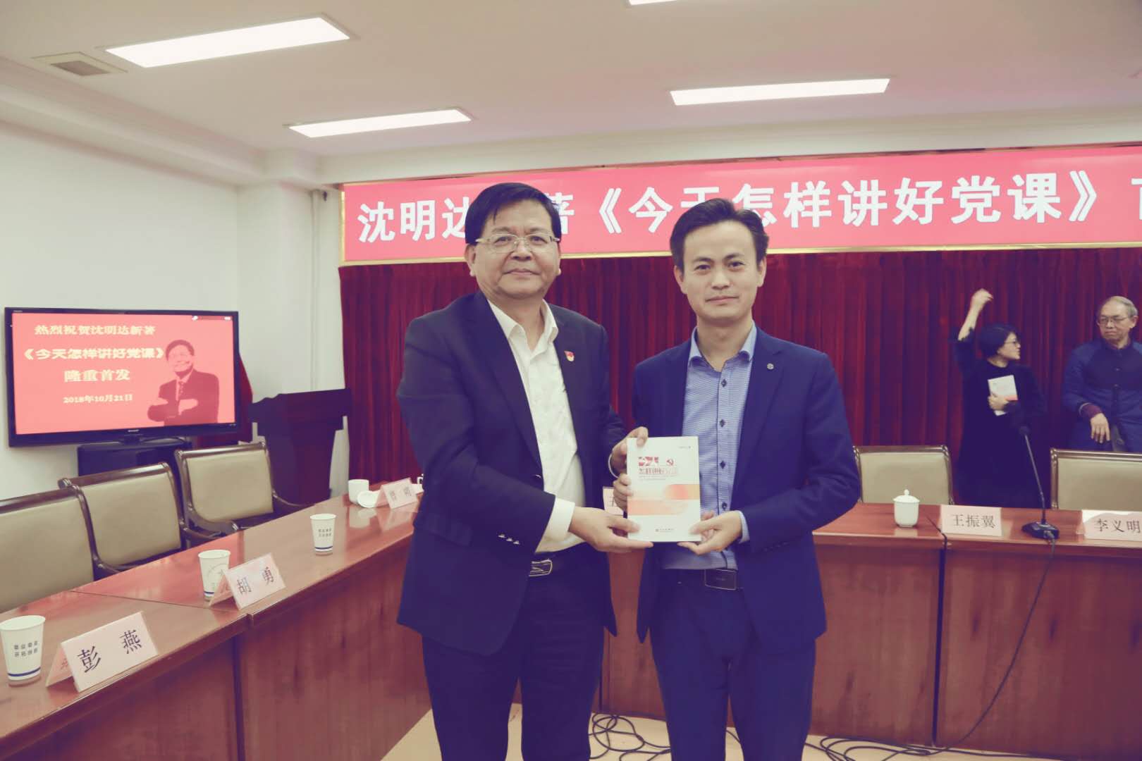 中交三航院原黨委書記、董事長沈明達 向上海文藝網總編畢凌鋒贈送新著《今天怎樣講好黨課》
