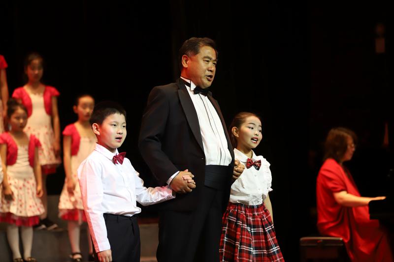 男高音歌唱家劉捷帶著孩子們演唱《我交給媽媽一顆心》。