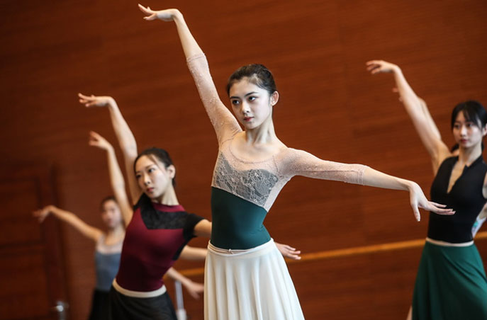 7月9日,遼寧芭蕾舞團團長曲滋嬌在指導演員進行芭蕾舞劇《花木蘭》的排練