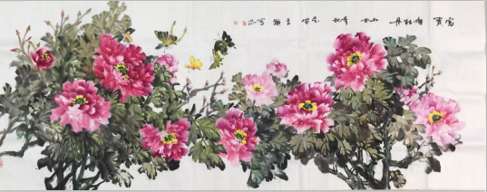 王穎老師的作品,縱橫揮墨、一任自然。其工筆畫(huà)自然而又不失線條變化,雅俗共賞。她的牡丹更是自成一格;放得開(kāi)、收得住,突出作品的神韻與情趣給人以大格調(diào)、灑脫、清雅、富貴和美的享受。