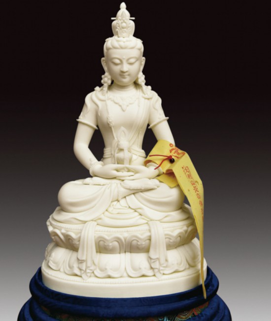 此次藏傳瓷塑佛像的展出,是蔡志奇、鄭鑫、林建勝、陳文德、鄭金星、丁慧等一批中青年藝術家,歷經數年深研明清兩朝內造藏式佛像的技藝和文化,學習和借鑒藏傳佛造像的工巧和規矩,通過設計師匠心獨運的能力結合陶瓷藝人巧奪天工的技藝水平。依據《造像量度經》如法如儀,手塑成型,經1380℃高溫燒制之后不走形,再現還原了德化瓷特有的玉潤通透的象牙黃質地的“量度標準”之藏傳佛教瓷塑作品,不但豐富了德化瓷塑的創作題材,拓展了德化瓷塑的發展空間。