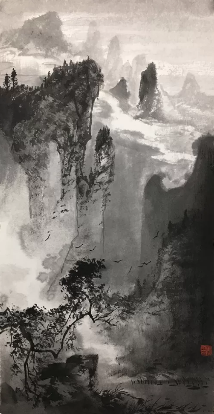 站在理論高處欣賞和解讀趙玉祥的山水畫,我們雖不能把他的藝術和全國著名國畫大家相提并論,但從他的藝術創作軌跡上,可以看到一種寶貴的精神,這就是:勤奮、堅持、堅定、思考、頓悟、勇于創新! 不因循守舊!