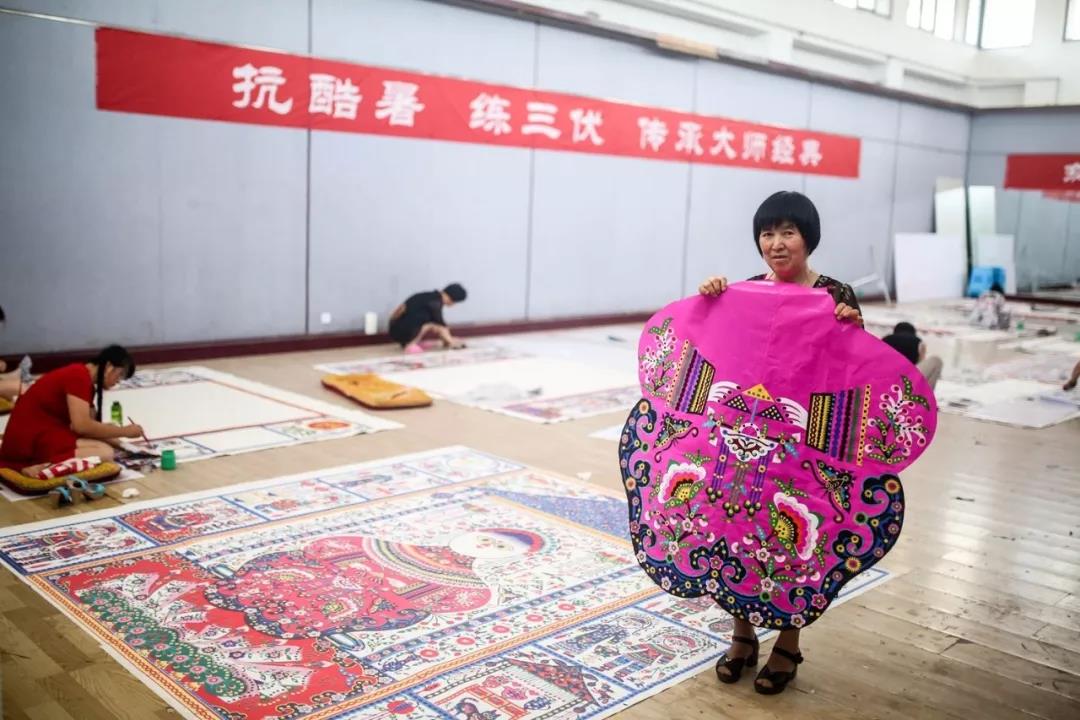 “抗酷暑練三伏傳承大師經典”旬邑縣文化館的三樓從去年起掛起了這樣一條橫幅,用來激勵何愛葉和她的團隊保質保量的完成縣上交代的任務——旬邑縣為紀念享譽國內外的民間工藝美術大師、傳奇農村老太太庫淑蘭,專門修了一座紀念館。