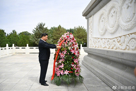 8月20日上午,中共中央總書記、國家主席、中央軍委主席習近平來到甘肅省張掖市高臺縣,瞻仰中國工農紅軍西路軍紀念碑和陣亡烈士公墓,向西路軍革命先烈敬獻花籃,并參觀了中國工農紅軍西路軍紀念館。 新華社記者 謝環馳 攝