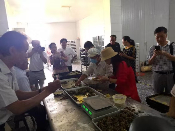 廠里的工作人員非常熱情,簡要向我們介紹整個生產過程,精選高檔面粉,原材料(花生,芝麻,核桃,蛋黃,瘦肉,食鹽,食油等),按照傳統工藝制作,做到原汁原味,香氣撲鼻。大家邊參觀邊拍照,邊學習邊品嘗,有的朋友在現場親手做了一個月餅,感覺跟做肉包子的方法有點相似。發自內心的感謝長平里的百年老字號月餅給大家帶來的美食,真的讓我們大快朵頤,讓我們的生活充滿陽光,格外甜蜜。期待百年老字號長平手工月餅成為維系親情的紐帶,勾起鄉愁的橋梁,圓老百姓脫貧致富夢的重要依托。