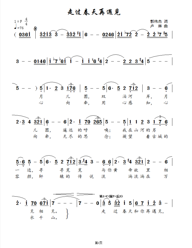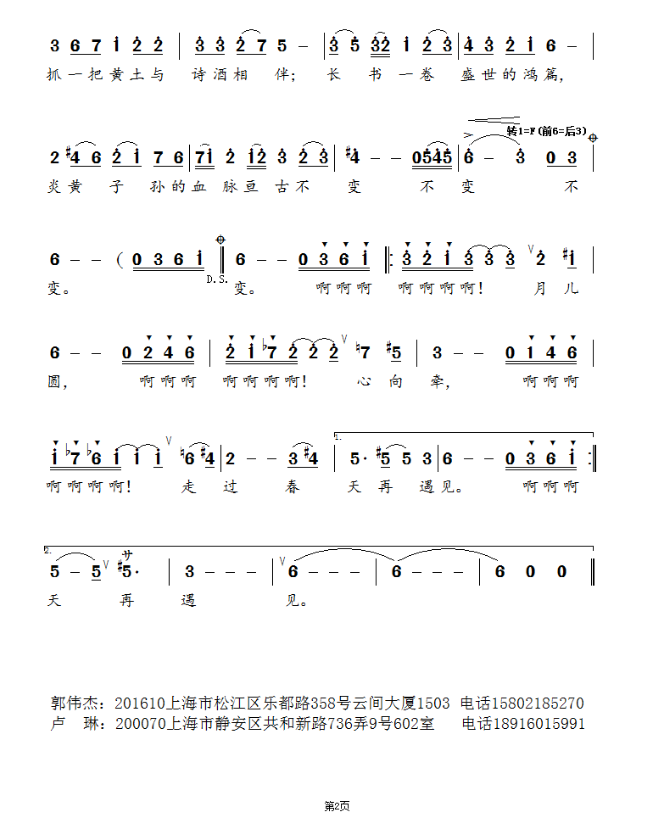 月兒圓/雙泊河岸遙遠的呼喚/我在山河的另一邊/尋尋覓覓與你黃帝故里相見/心相牽/用心]感知無盡的思念/凝望著古城的容顏/軒轅的傳說流淌在萬水千山。走過春天與你再遇見/抓一把黃土與詩酒相伴/長書一卷盛世的鴻篇/炎黃子孫的血脈亙古不變。
