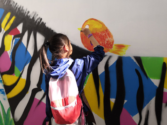 圖片說明:南京東路街道“慧畫無限”社區(qū)公共美術活動親子家庭墻繪(資料圖)