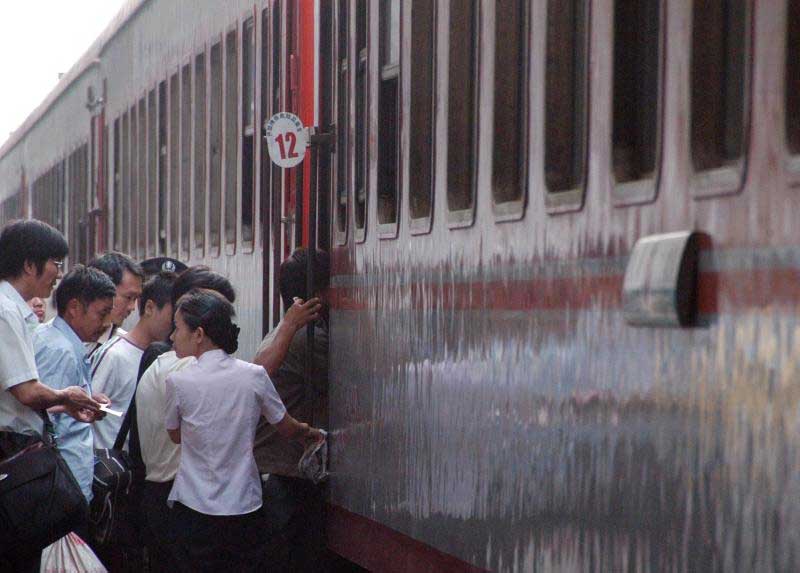 記得北站火車站候車室非常簡陋,頂部上方是用三角鋼鐵架起的樑,室內(nèi)是五六排長長“通道”,每條“通道” 前方的上方掛著一塊牌子,上面寫著火車的車次和開往的方向,這些牌子都是人工書寫的,不象現(xiàn)在是用電子屏幕。前面火車開走了,工作人員便把下趟出發(fā)的火車車次牌再換上去。“通道”只有一米左右寬度,兩邊是木條的長凳子,候車室既擁擠,又顯得很亂。由于候車室里只有高高的兩排窗戶,人多時,里面的空氣相當(dāng)混濁,老人和小孩,以及身體虛弱的乘客,往往“吃不消”,沒坐到長條木凳的乘客,一邊排隊候車,一邊要隔三差五地“溜”出候車室去透透氣,防止昏倒。